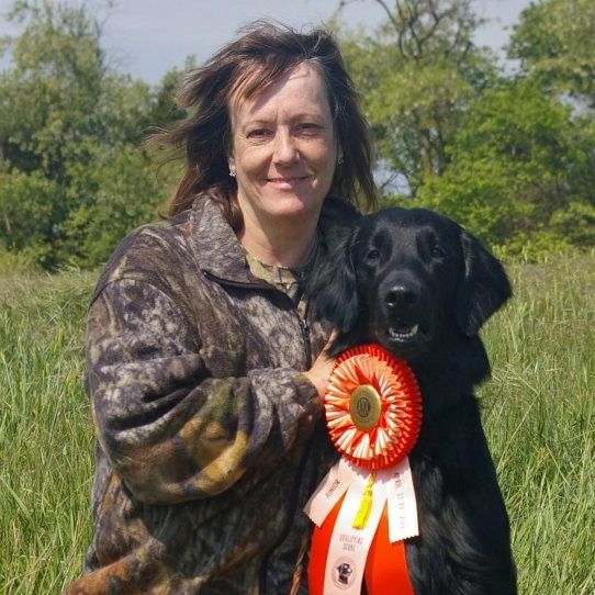 My love of flat-coats began in 1998 with Valley. Our path together led us into multiple venues of conformation, agility, obedience and field. My true love is working my dogs in the field watching them do what they were bred for.